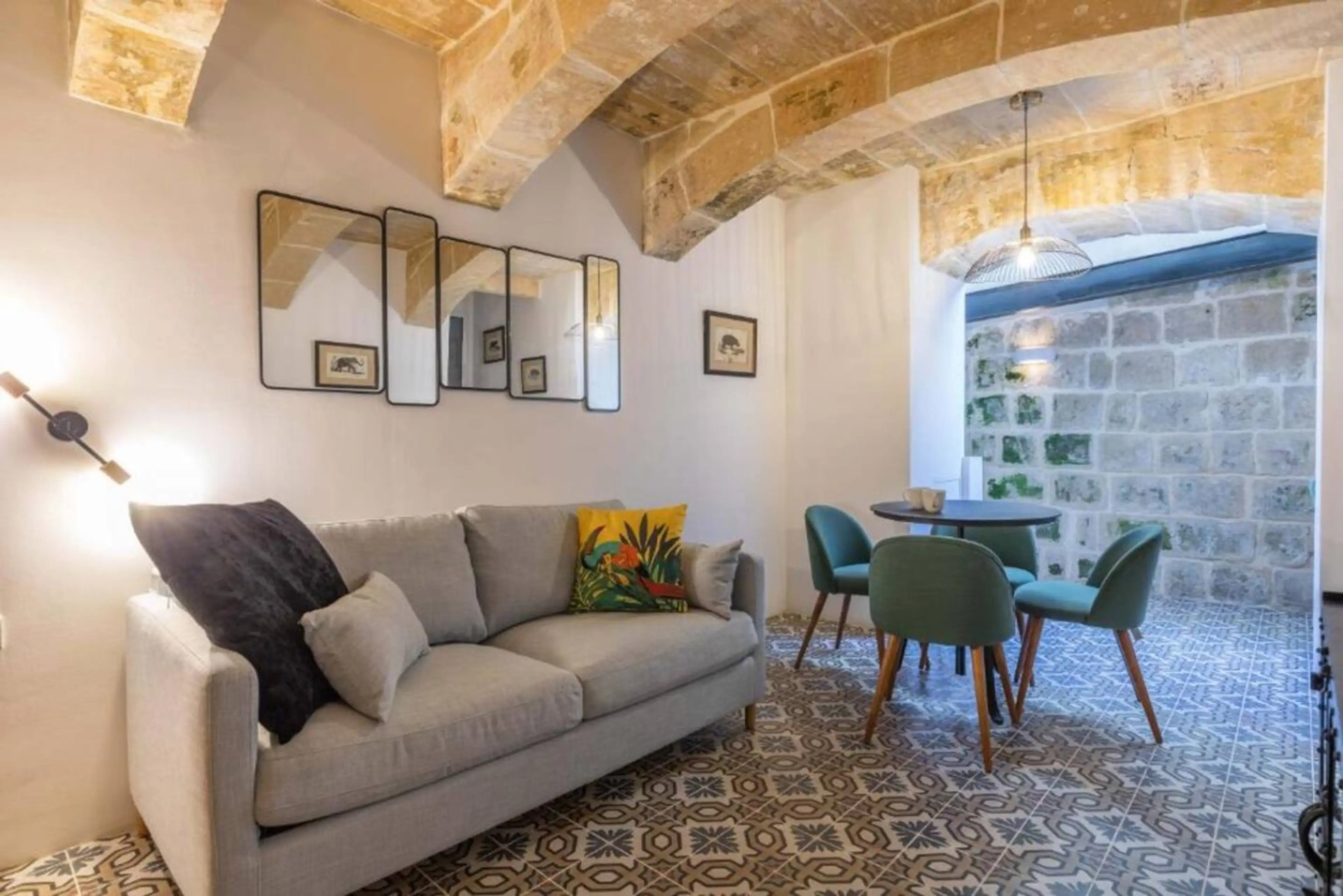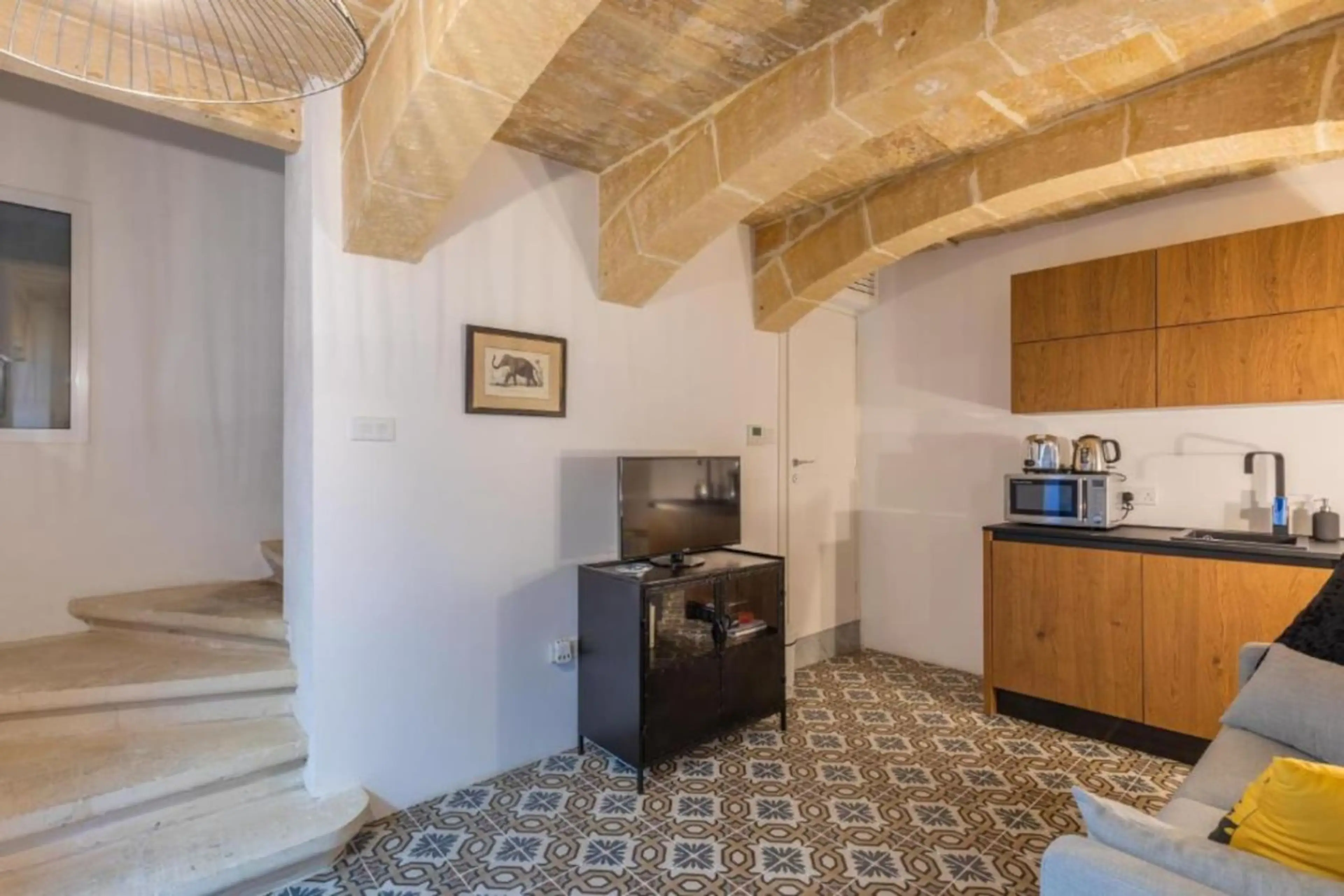 A ground floor maisonette split on 2 levels being the ground level having the bedroom and the basement having the kitchen living dining and bathroom. A cute space perfect for a quick getaway for a couple or solo travel. Opposite the property is hastings gardens which has beautiful views of Marsamxe...